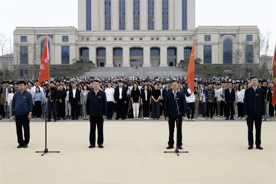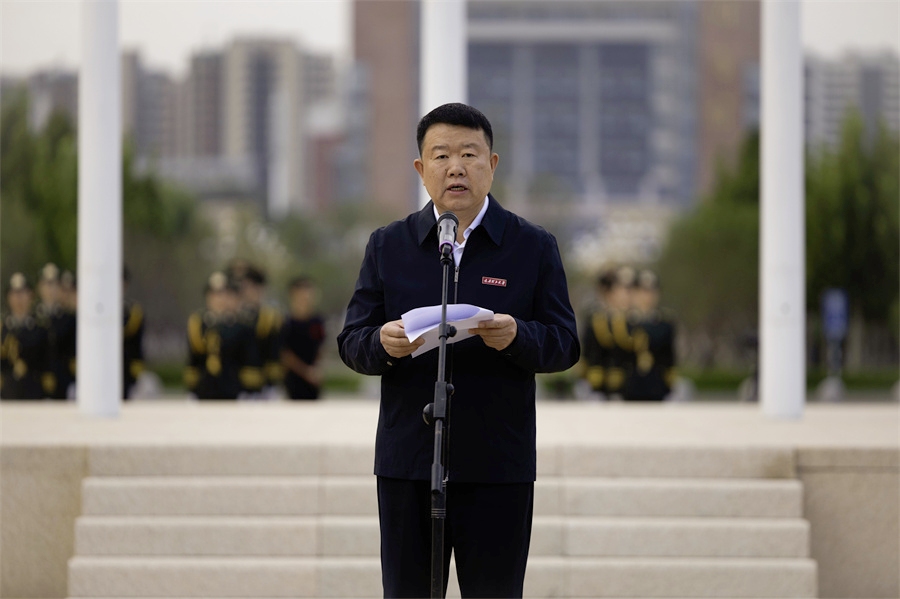 校长孙宏斌在迎西校区仪式上讲话,肯定了过去一学年全体师生员工共同奋斗取得的丰硕成果。他指出,过去一年,通过全体师生员工的共同努力,学校在人才培养、科学研究、社会服务、文化传承创新等方面均取得了令人欢欣鼓舞的新成就。学校科研团队在关键核心技术领域不断取得新突破,服务国家重大战略和区域经济发展的能力持续增强;广大学子在国内外各类竞赛舞台上摘金夺银,充分展现了太理学子卓越的创新精神与扎实的实践能力。他寄语全体同学,要从庄严的升国旗仪式中汲取奋进力量,将心中的爱国爱校之情转化为刻苦学习、奋发向上的实际行动;牢记 “求实、创新” 校训精神,秉承太理人的优良传统,以青春之我、奋斗之我,为学校发展务实进取,为祖国建设添砖加瓦!