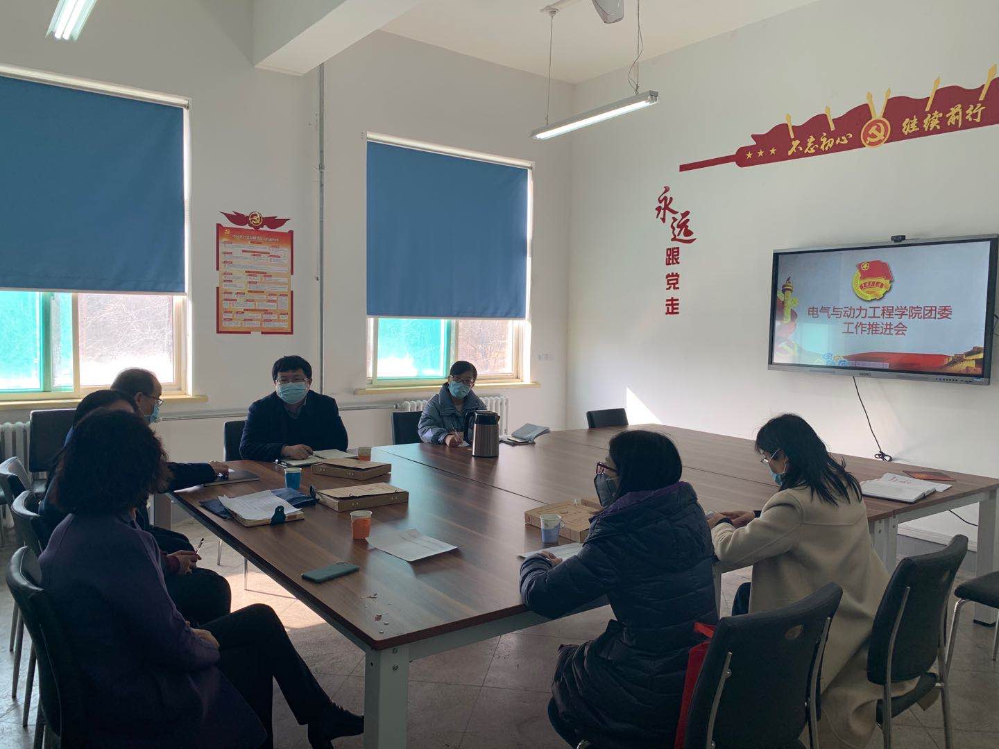 为助推学校“三全育人”格局建设,全力落实“立德树人”根本任务,深入推进学院共青团工作,3月13日下午,电气与动力工程学院共青团工作座谈会在电机馆二层会议室召开,会议特邀请校团委书记闫新及团委科技实践部部长安晓艳莅临指导,学院党委书记吉育峰、院长韩肖清、副书记郭春耀、学工办主任侯婷及团委书记秦晓婷参与座谈会。会议由郭春耀主持 。