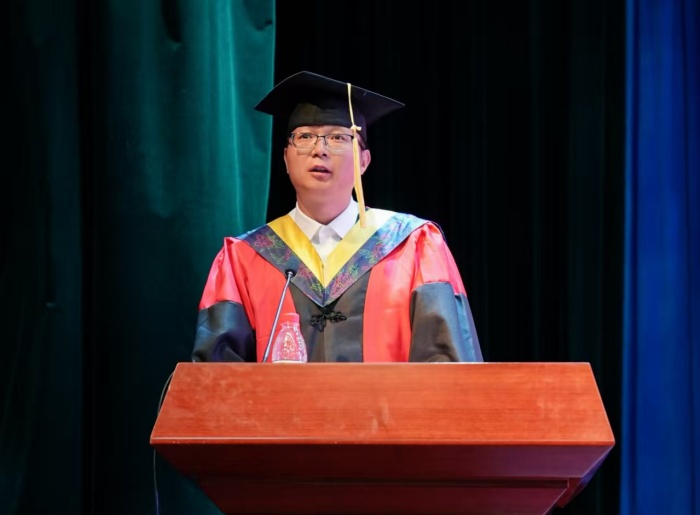 院长王开教授以《深地书华章,青春赴山海》为题致辞,向全体毕业生送上祝福并提出四点希望:一是希望他们树立远大的理想和抱负,二是希望他们保持学习的热情和动力,三是希望他们发扬团结协作的精神,四是希望他们保持乐观积极的心态。他勉励同学们在未来的人生道路上,要以振兴我国矿业事业为己任,为实现中华民族伟大复兴的中国梦贡献自己的力量。