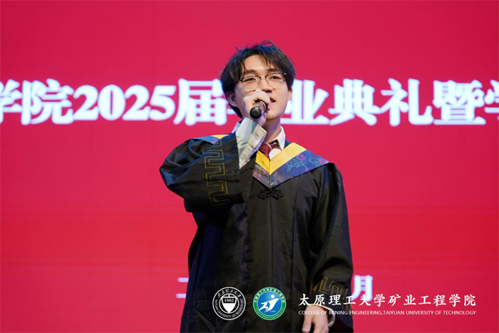 研究生毕业生代表梁晓敏和本科毕业生代表许柯欣分别登台发言,深情回顾了在矿院的求学历程,表达了对母校、师长和同窗的无限感激与不舍,誓言将秉承矿院精神,勇担时代使命。